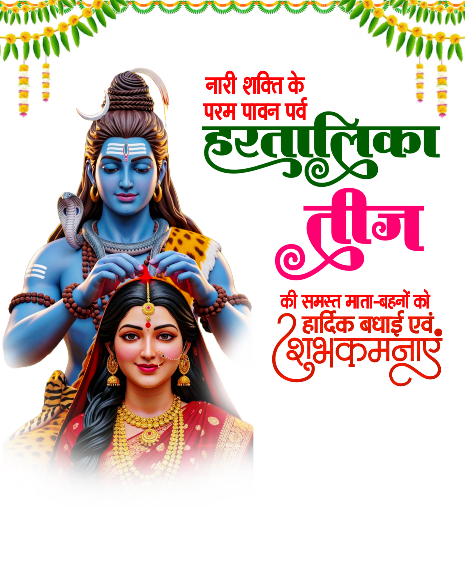 Hartalika Teej Wishes PNG with Shiva Parvati | Free Download