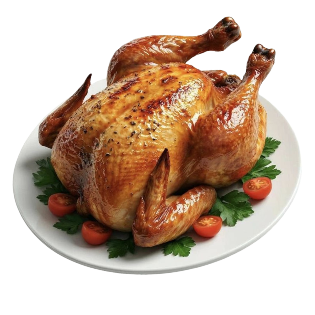Roasted Whole Chicken PNG | Grilled Chicken on Plate Transparent Image