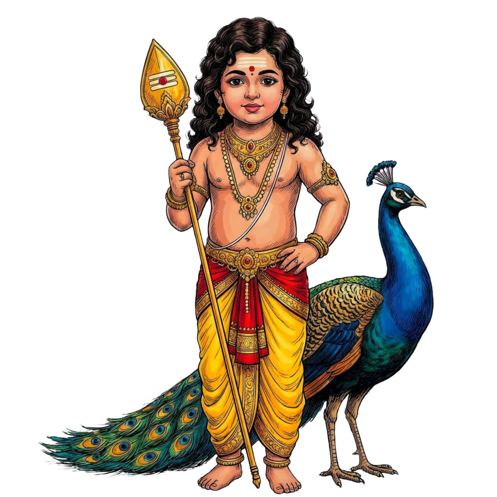 Lord Murugan PNG | Bala Murugan with Peacock Illustration