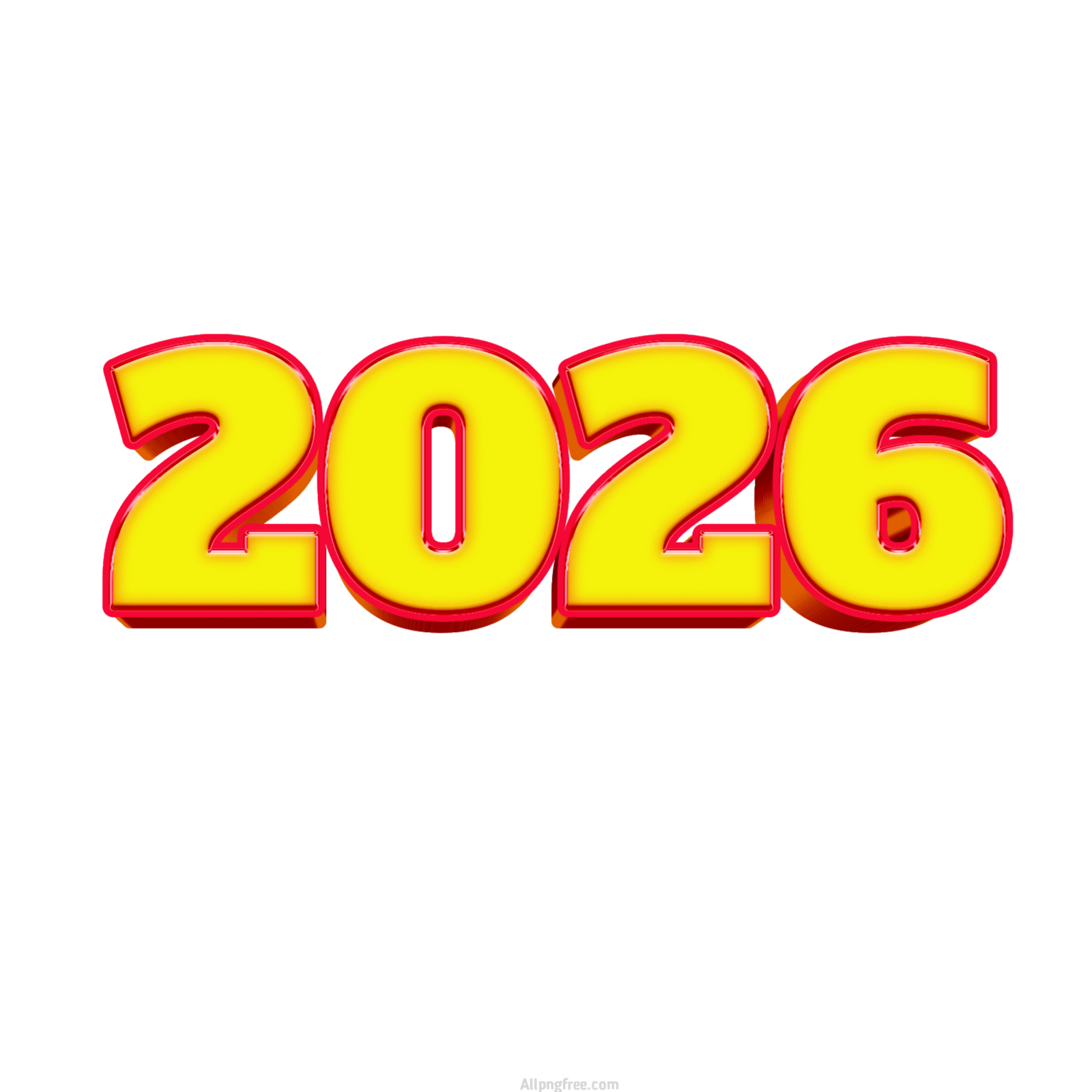 2026 Yellow & Red 3D PNG | Happy New Year 2026 PNG