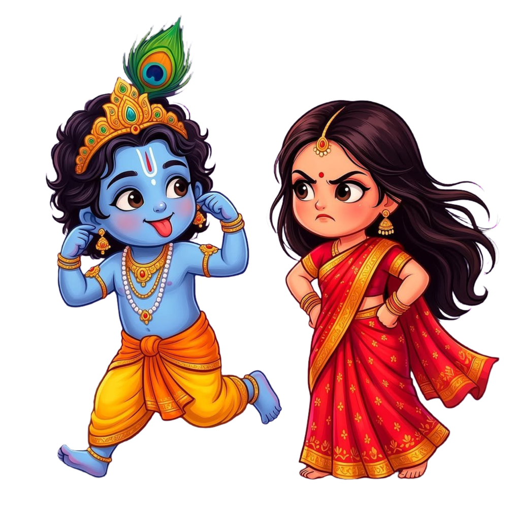 Cute Naughty Krishna Angry Radha PNG – Cartoon Transparent Image
