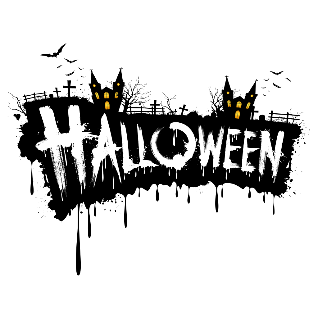 Halloween Banner PNG | Dripping Font & Haunted House Graphic