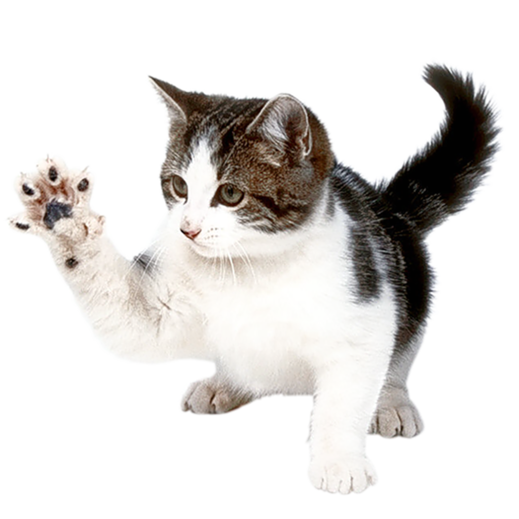 Cute Cat Raising Paw PNG Transparent Background | Playful Cat Cutout