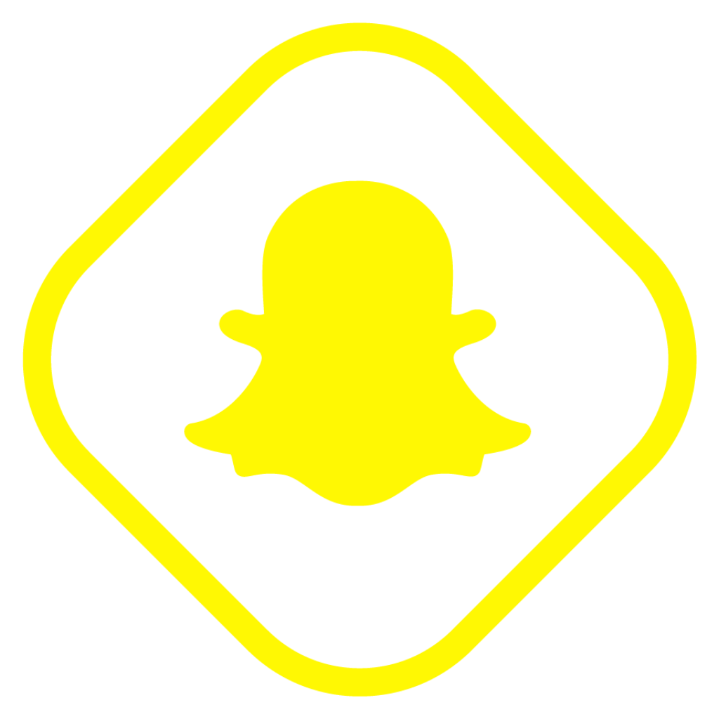 Snapchat Outline Logo PNG – Yellow Ghost in Diamond Icon on Black