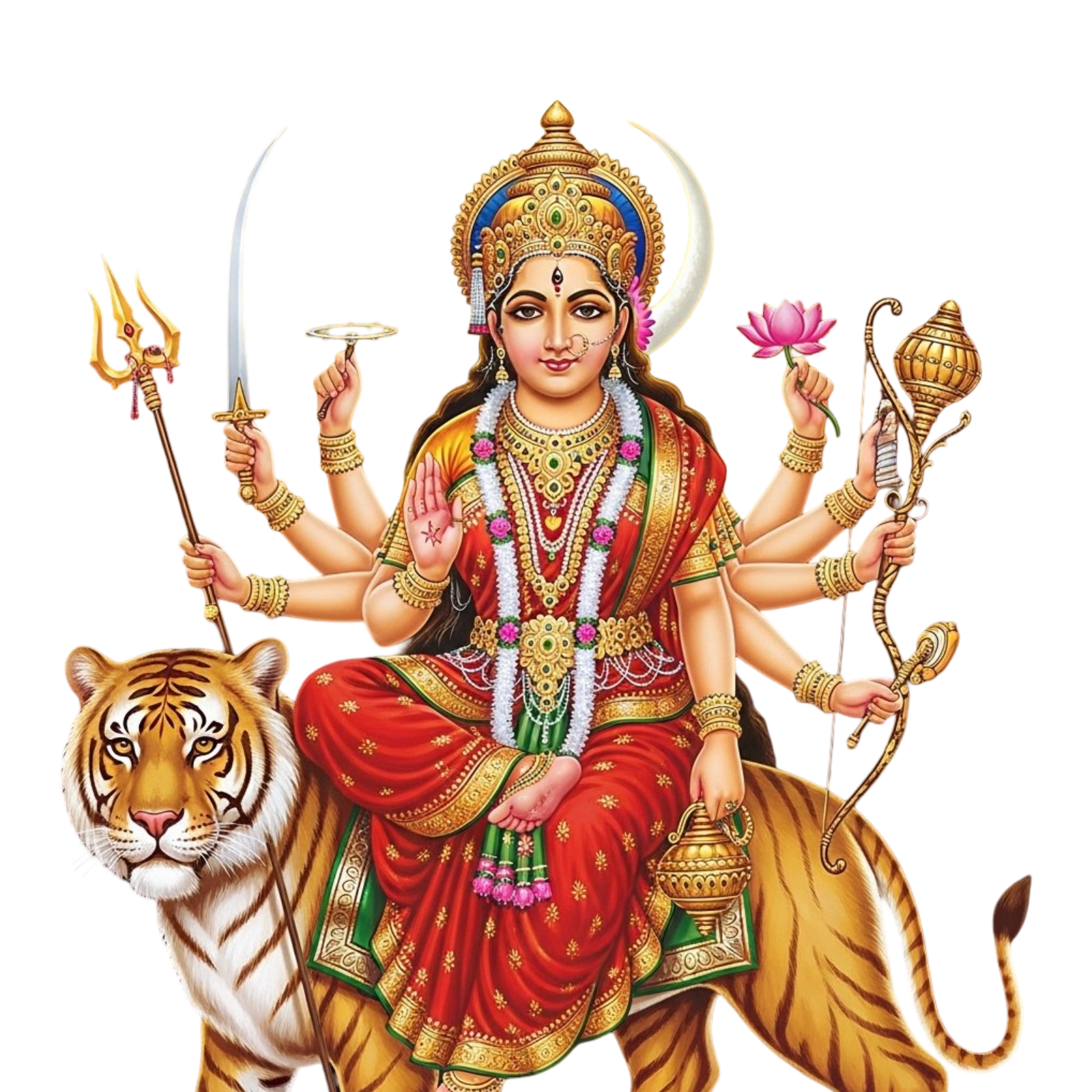 Maa Chandraghanta on Tiger PNG | Third Navratri Goddess png