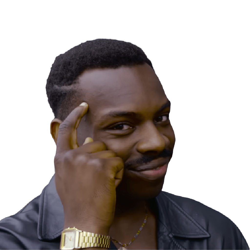 Confident Man Pointing to Head Meme | Leather Jacket Gold Watch Thinking Face PNG