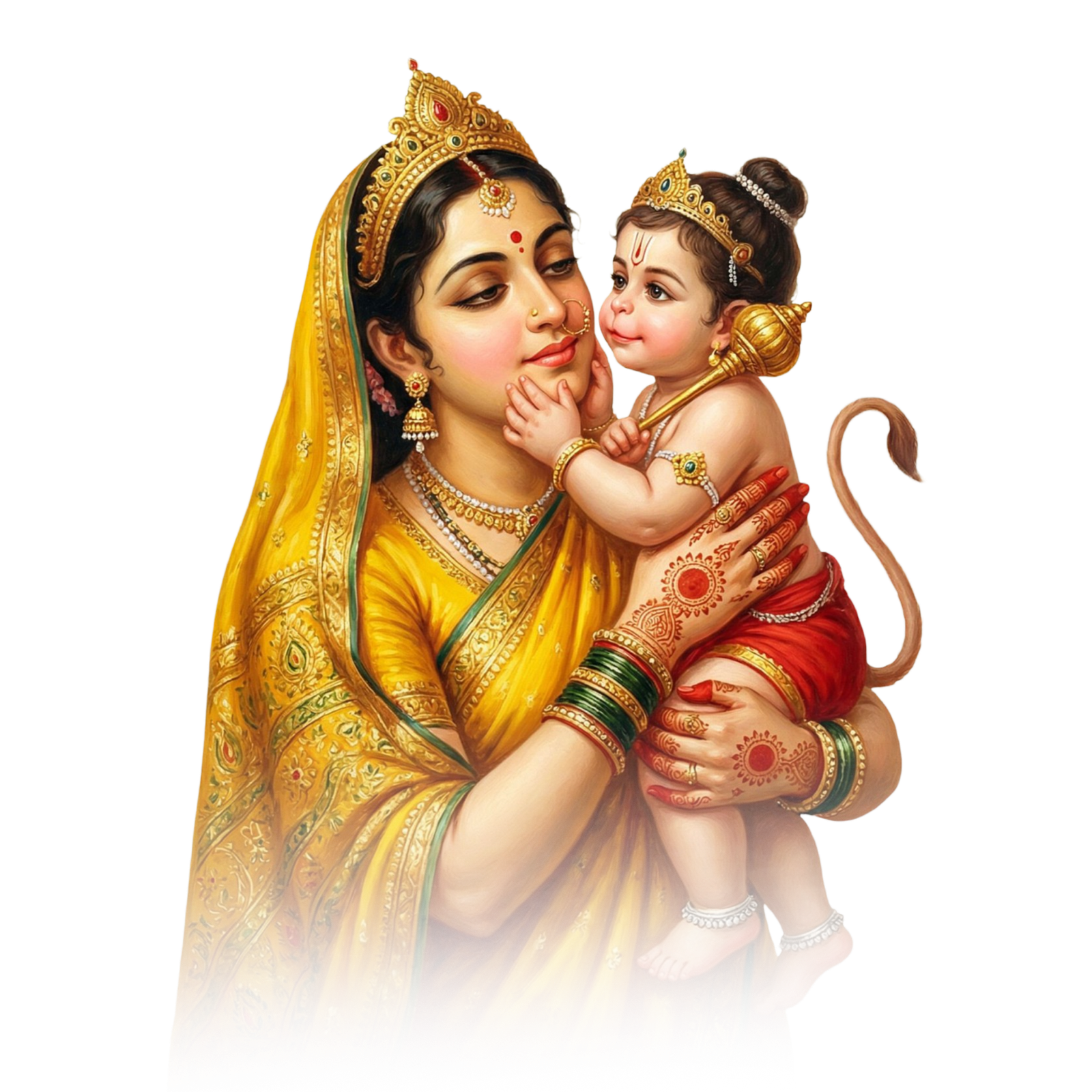 Mata Anjana with Bal Hanuman PNG | Hanuman Mother HD Image