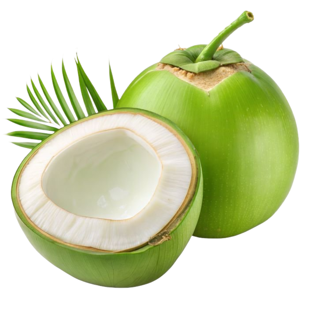 Fresh Green Coconut PNG Image – Cut Open Tender Coconut with Transparent Background